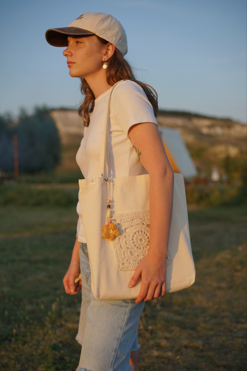 Летом мы продолжили проект и выпустили новую коллекцию - шоперы с «бабушкиным квадратом». Этот элемент стал символом уюта, тепла и тёплых воспоминаний об уходящем лете.